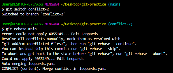 merge에서와 똑같이 당장 충돌 해결이 어려울 경우 아래 명령어로 rebase를 중단한다.