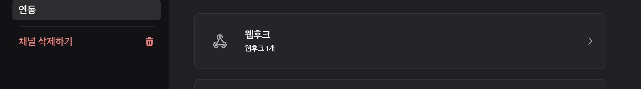 type 안넣어도 됨, 이름 알아서 (DISCORD_WEBHOOK_URL), value에 디스코드 웹훅 url을 넣으면됨. - discord webhook Url은 아래 톱니 바퀴 클릭하고 좌측에서 연동 클릭